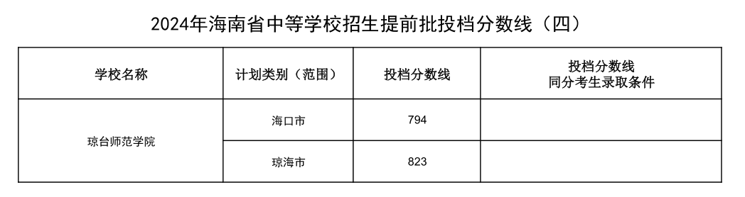琼台师范学院2024年海南省定向公费师范生录取分数线