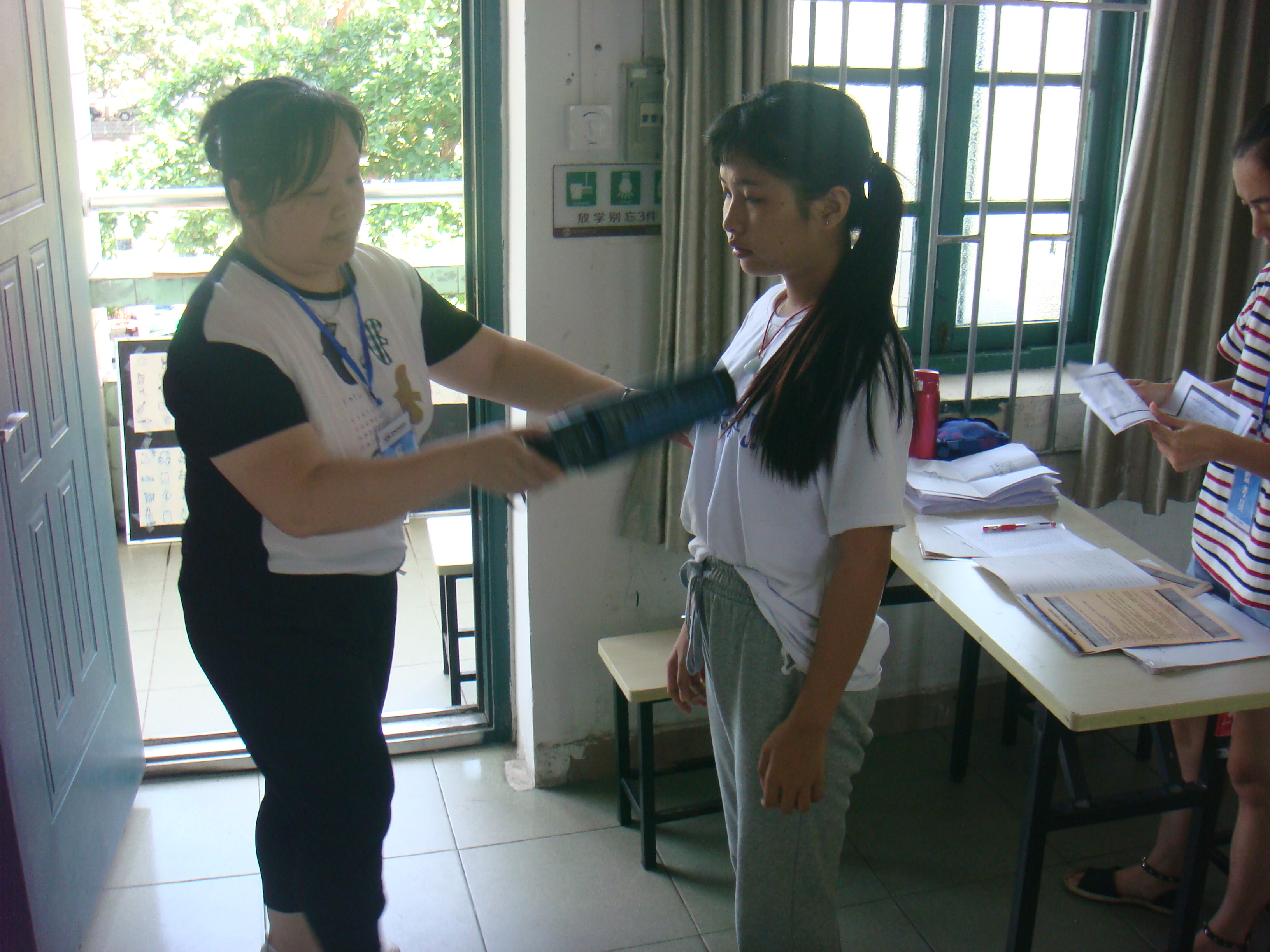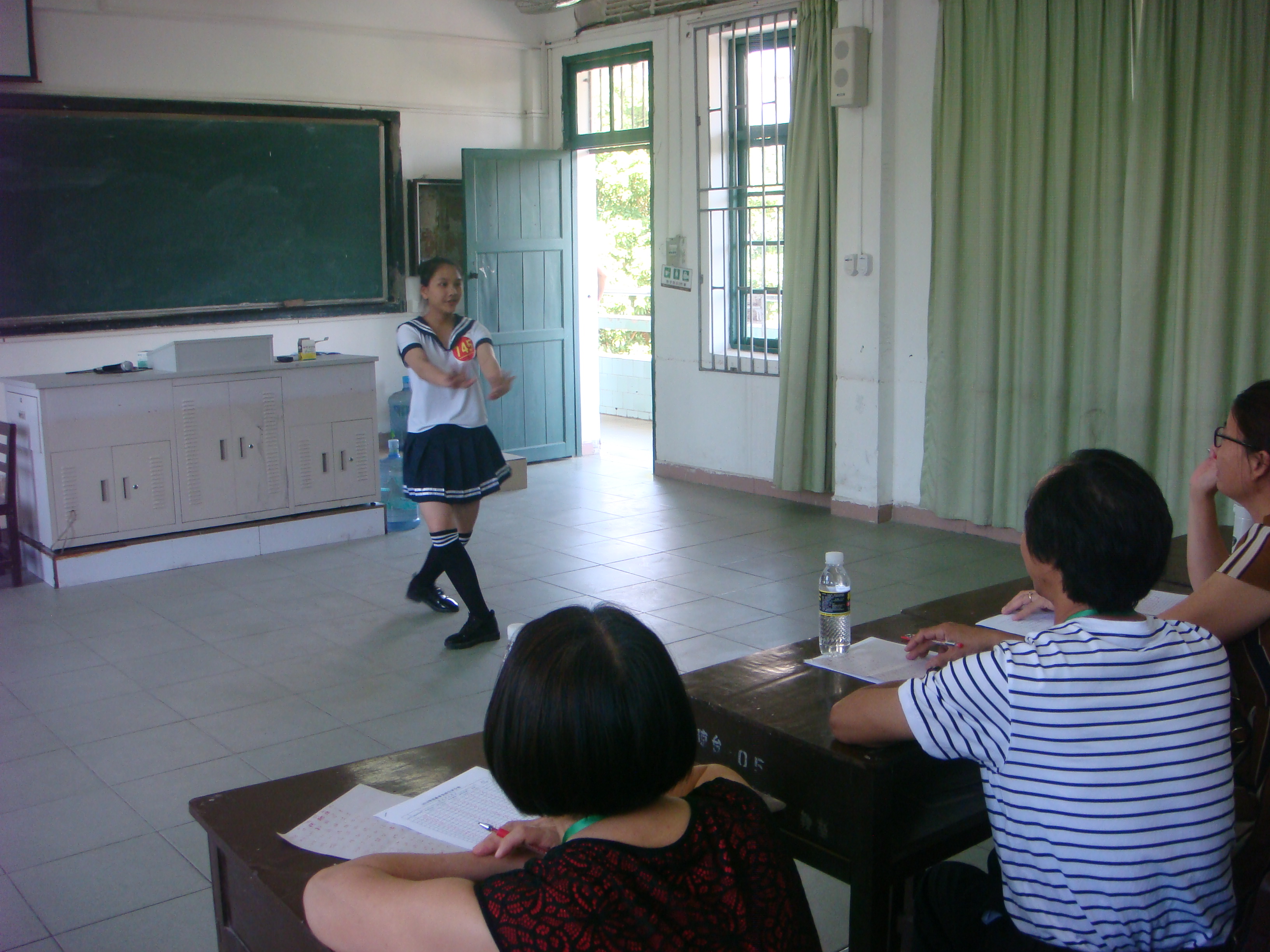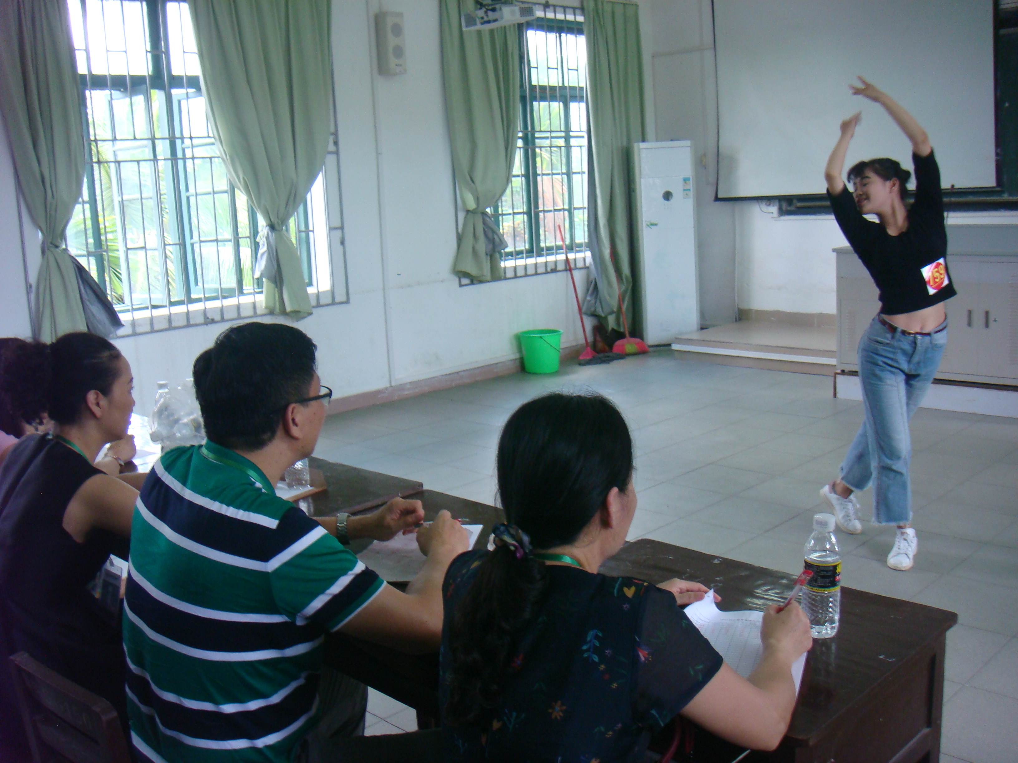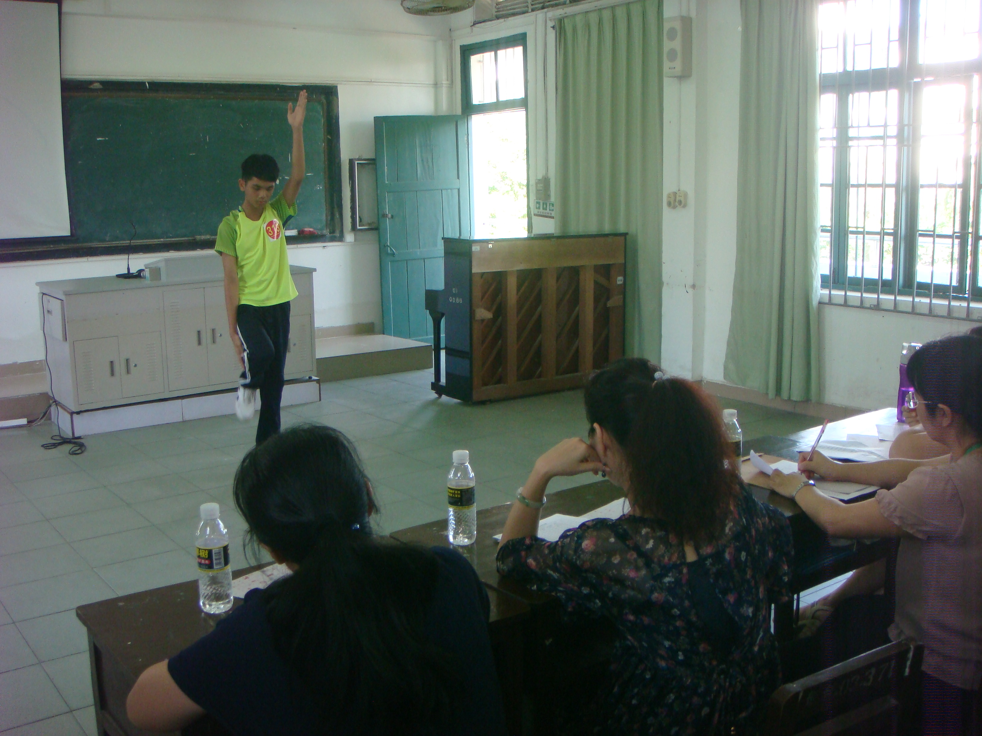 做广播操,看看动作协调性,还是个男生哦!