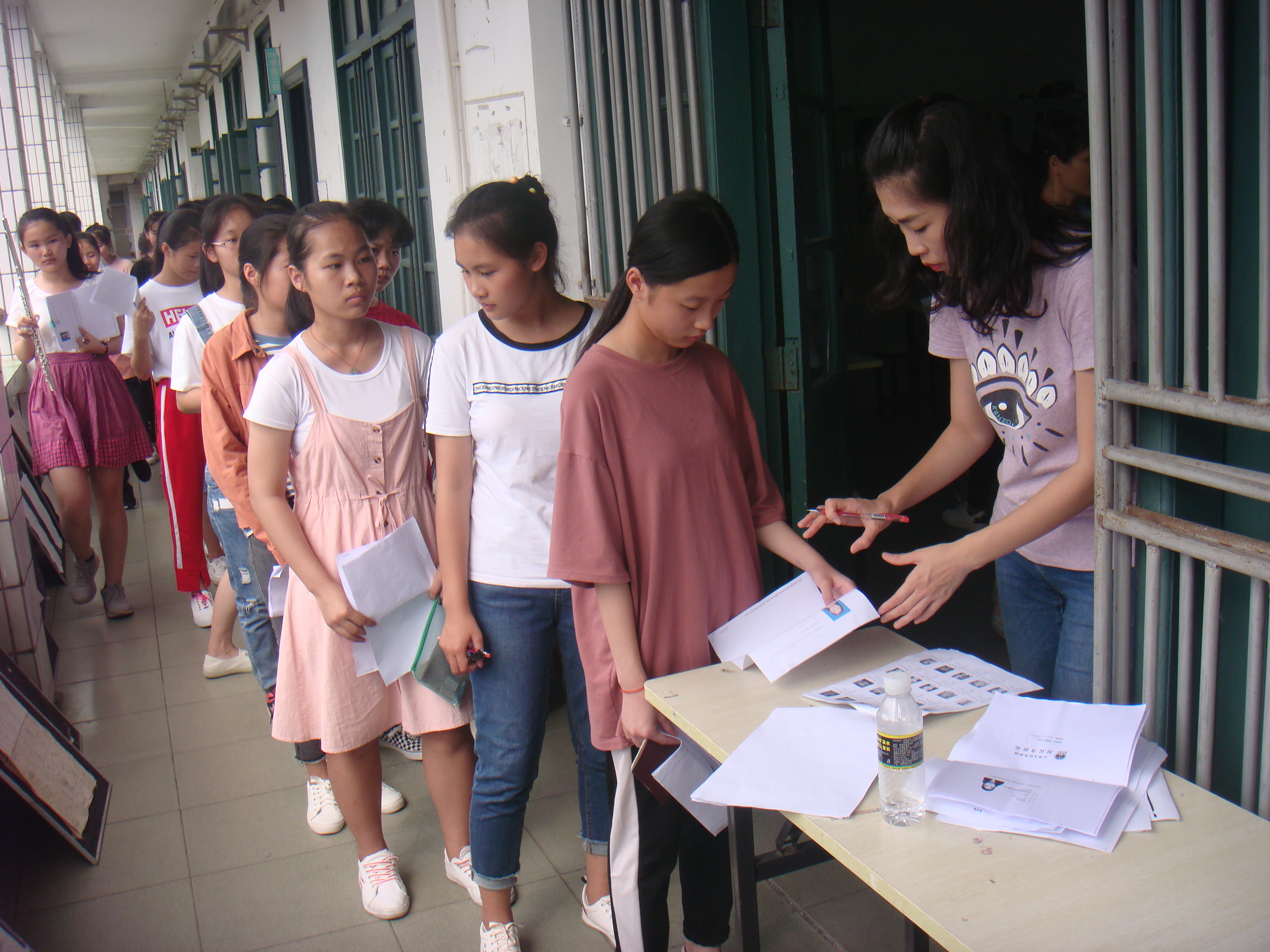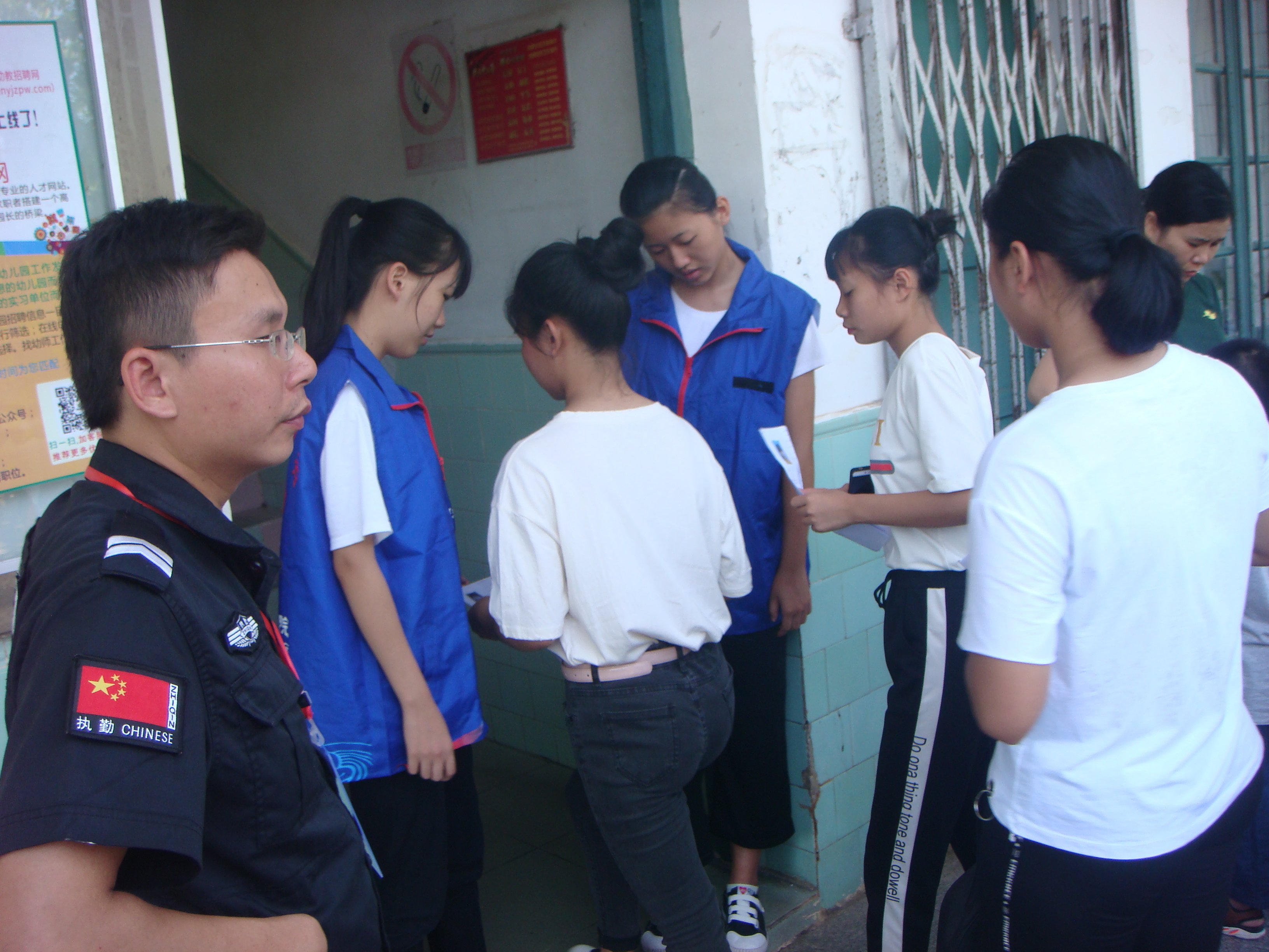 工作人员正在认真核对证件,还要通过安检的哦!