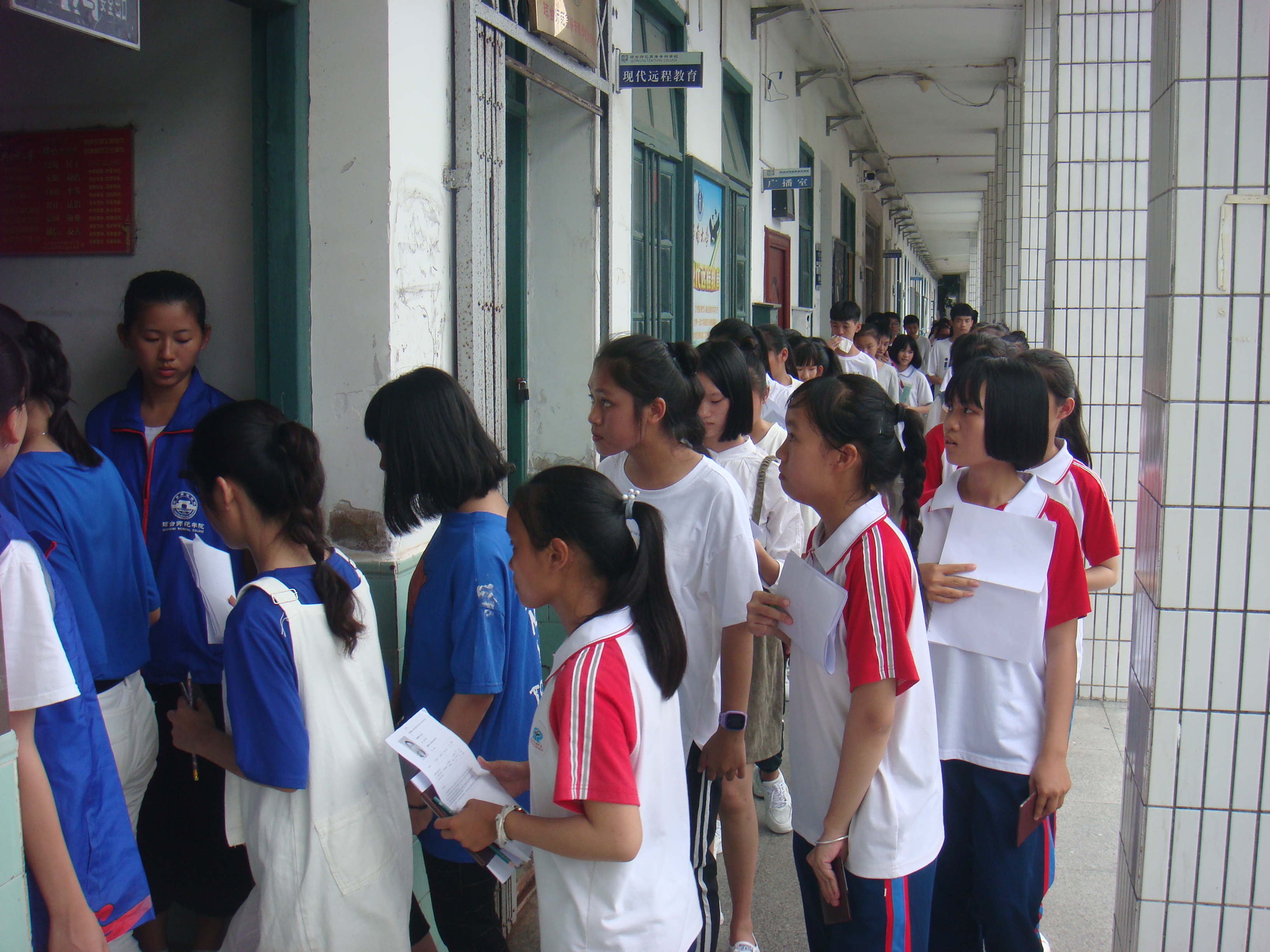 考生排队进入考场,貌似不少同学结伴来参加面试。