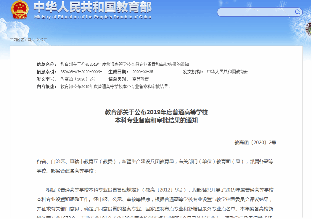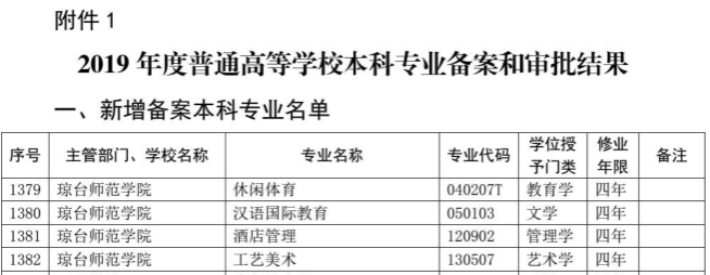 日前,教育部发布了《教育部关于公布2019年度普通高等学校本科专业备案和审批结果的通知》(教高函[2020]2号)文件。经普通高等学校专业设置与教学指导委员会评议,我校增设“休闲体育”、“汉语国际教育”、“酒店管理”、“工艺美术”4个专业,学位授予门类分别为教育学、文学、管理学和艺术学,从2020年秋季开始正式招生。目前,我校本科专业数量已达24个,涵盖了教育学、文学、理学、工学、艺术学五大学科门类。